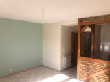 Il comprend une entrée donnant sur cuisine non équipée et un salon lumineux.